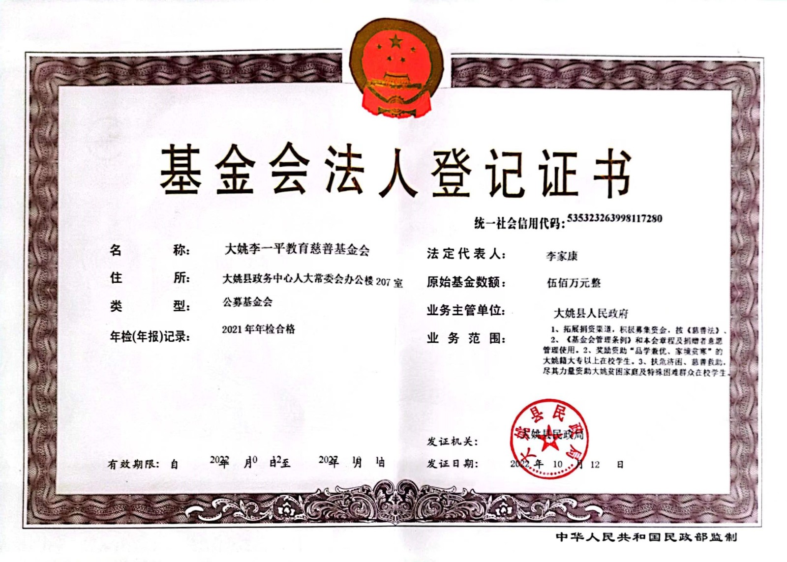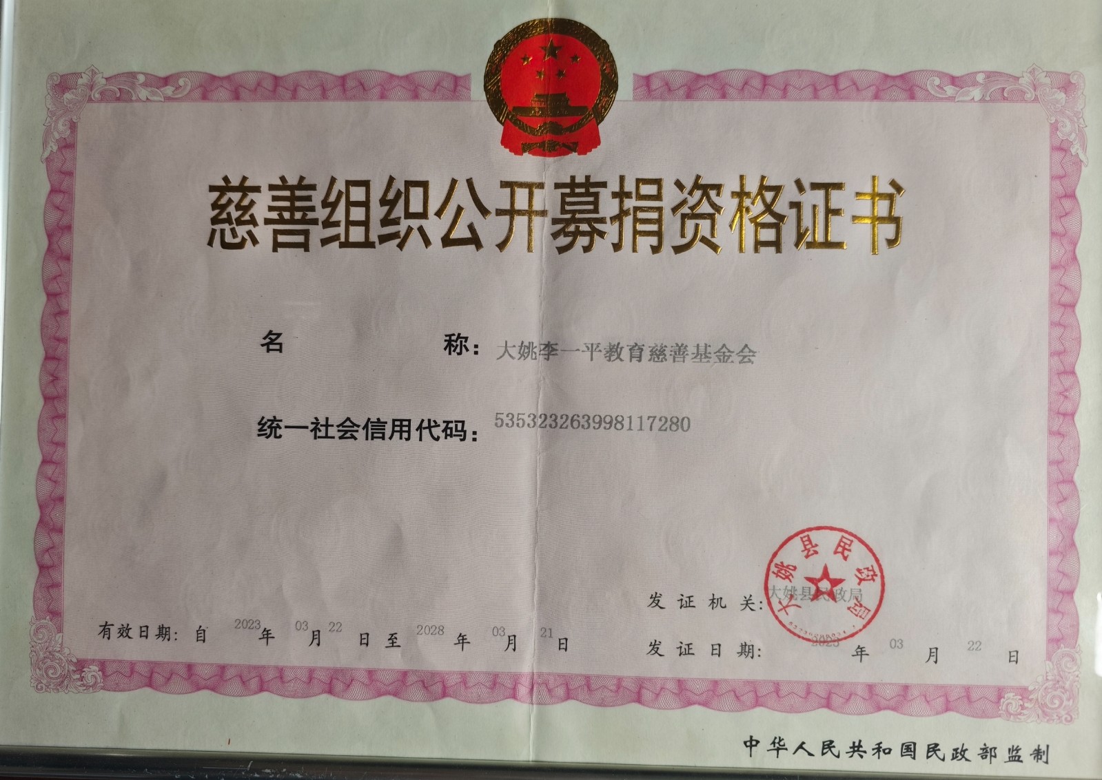 本会属慈善组织公募基金会,有独立的慈善组织法人。宗旨是:弘扬李一平精神,奖优济困,助教助学,助推大姚教育事业发展。纪念热爱家乡、热心教育的大姚一中创始人,原国务院参事、爱国民主人士李一平先生。从事教育事业公益性、非营利性慈善活动,主要募捐范围在云南省。