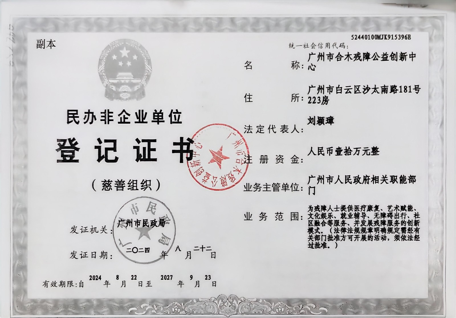 广州市合木残障公益创新中心是一家在广州市民政局注册成立,专注于以赋能和创新的方式,促进残障人士的自我成长、自主就业和社会融合的慈善组织。
