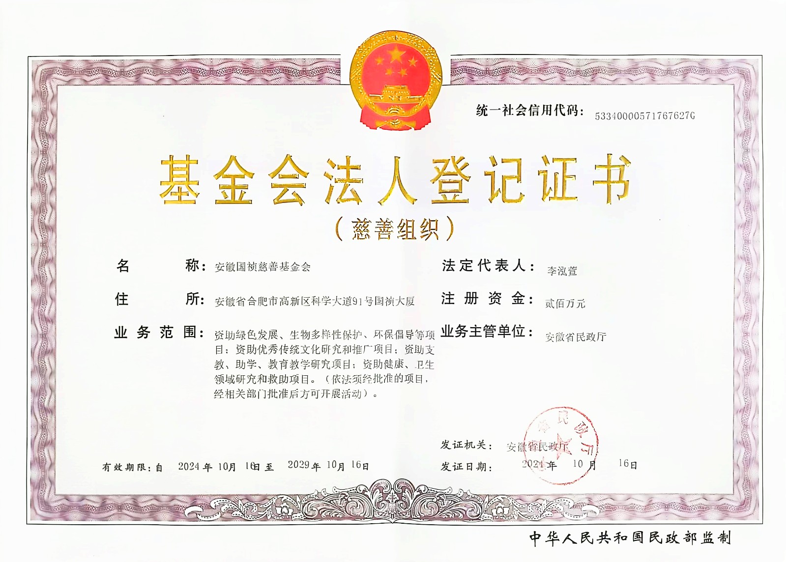 安徽国祯慈善基金会由安徽国祯集团股份有限公司及成员企业于2011年发起成立,是一家定位于资助型、平台型的5A级基金会,重点关注“生态环保”和“人文教育”两大公益领域.先后荣获安徽省百优社会组织、中国基金会2018年度金桔奖“新锐资助者”、安徽省社会组织助力脱贫攻坚先进集体、全国农村留守儿童关爱保护和困境儿童保障工作先进集体等荣誉。